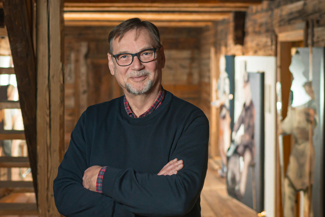 Einzelporträt älterer Herr mit alpenländischer StrickwestePeter Neumann